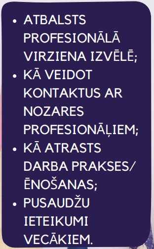 21.04.2022. plkst. 18:00 tiešsaistes seminārs vecākiem ar lielisko karjeras konsultanti, vairāku grāmatu autori I.Lemešonoku, kura laikā uzzināsiet, kā sniegt atbalstu pusaudžiem izvēlētā profesionālā virziena un darba veicēja personības veidošanā, prasmju un talantu stiprināšanā, lai veiksmīgāk iekļautos darba tirgū.